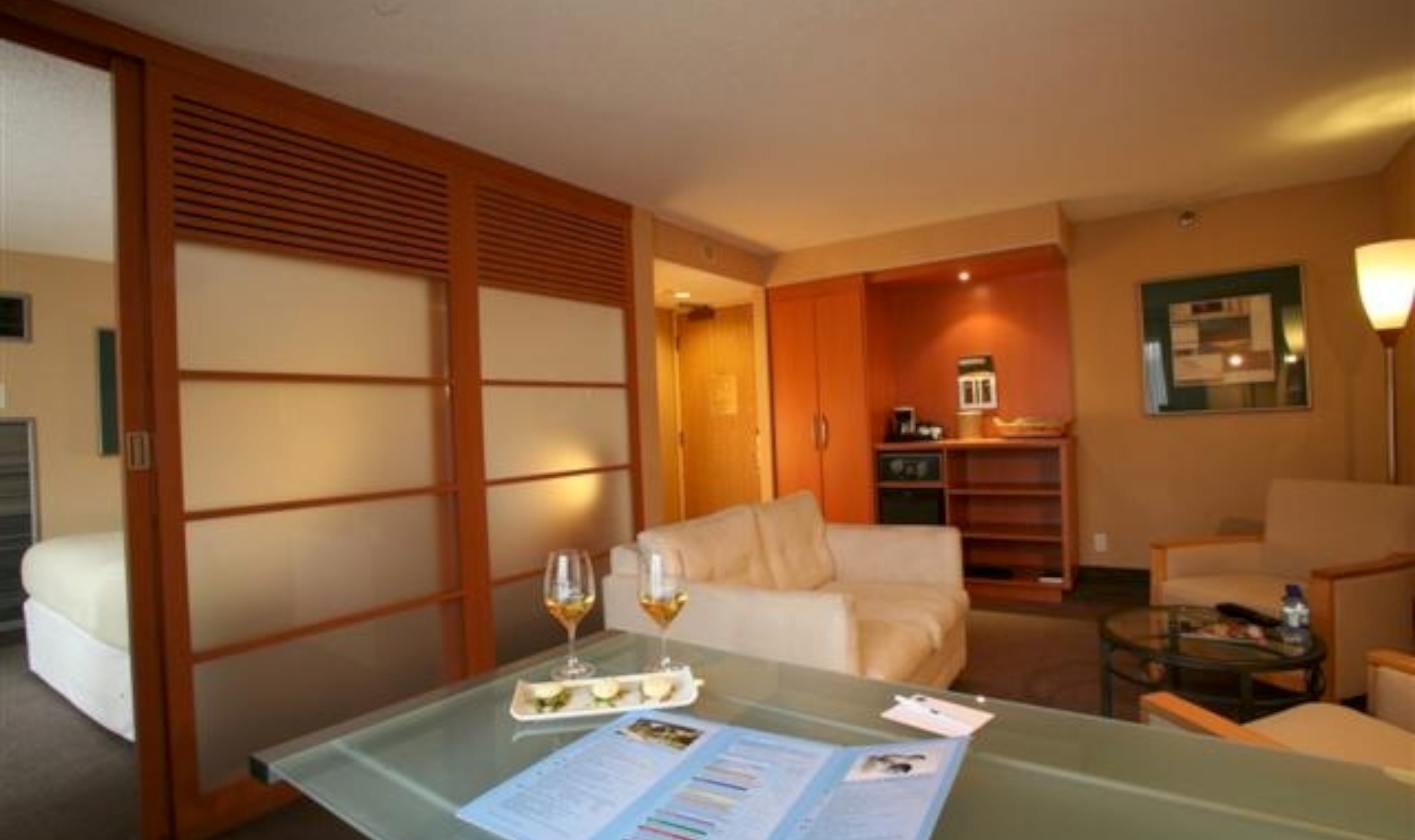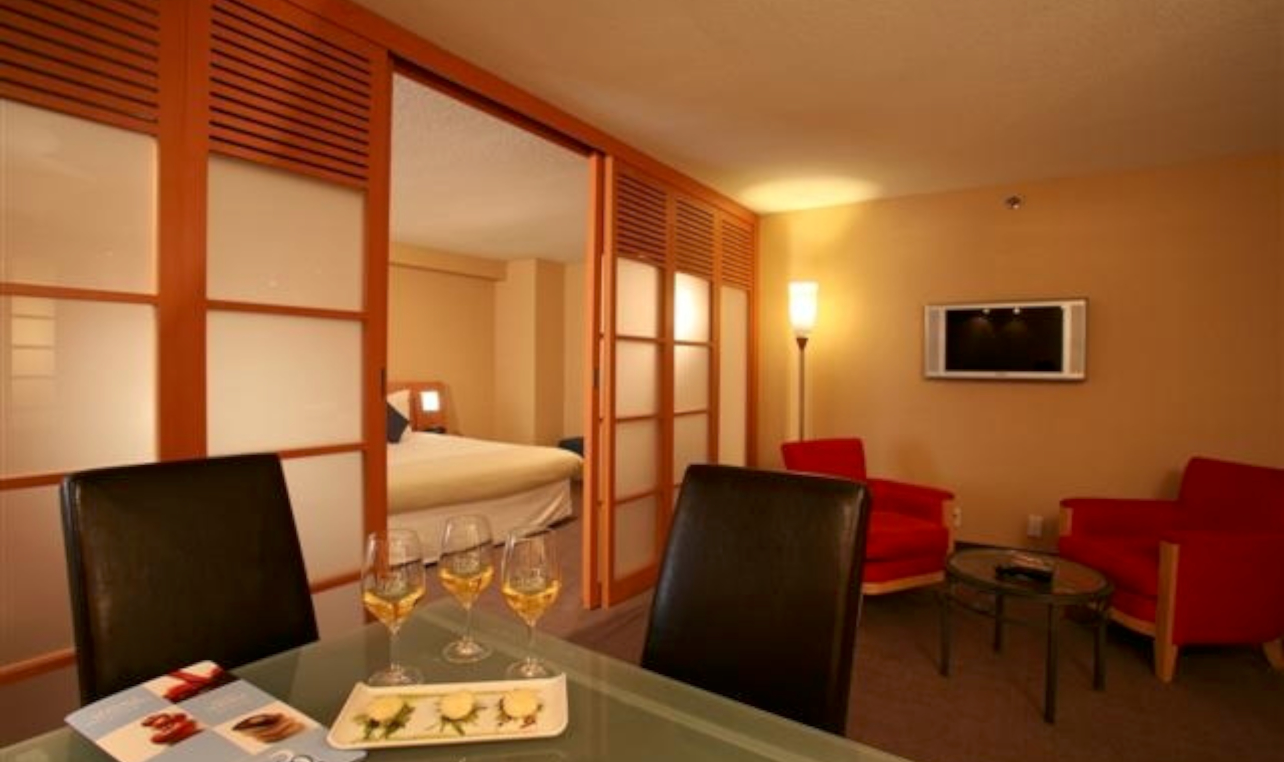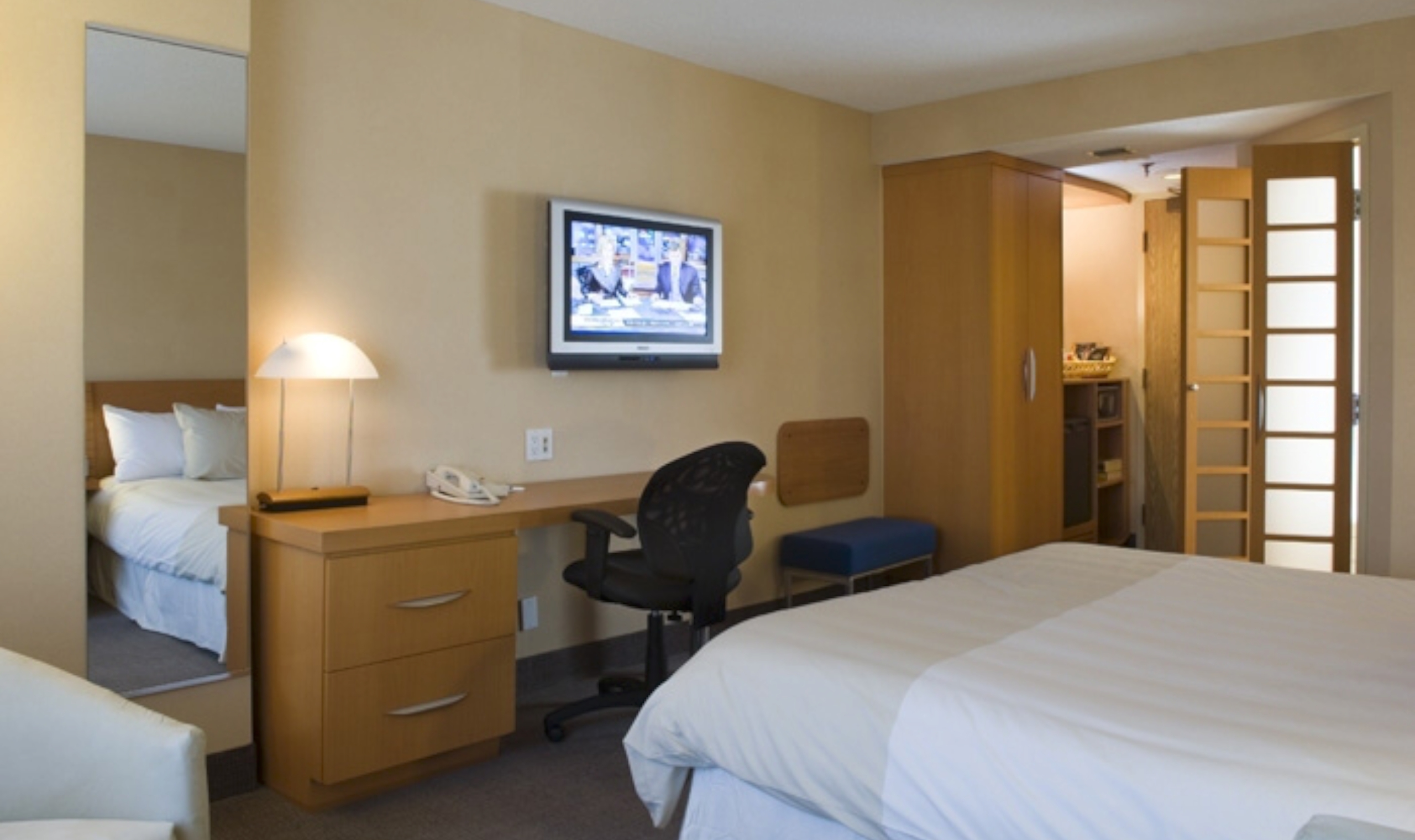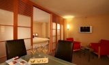 Rooms are spacious with light wood furnishings, and crisp white linens. Choose a superior room or upgrade to an executive room with a separate bedroom, free wifi and a bar area.